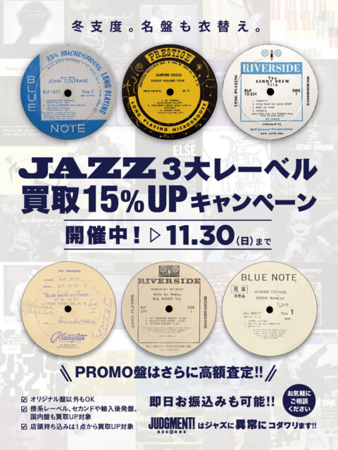 3大レーベル「BLUE NOTE」「PRESTIGE」「RIVERSIDE」アナログ盤 買取15%UPキャンペーン!!
