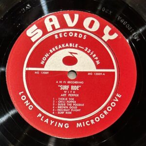 ● Art Pepper / Surf Ride / Savoy / MG12089 / EX(+) / EX+ / オリジナル/US盤/MONO/赤ラベル/DG/X20・手彫りRVG/巻Laminated Cvr.(1st)/ジャケ裏スタンプ極小,若干シミ程度の美品!抜け裂けなし!角ピン!コーティングペッカペカ!/盤美品!薄も見当たらない!高音圧・良音・爆音!/※極上級のジャケ盤の組み合わせ!新品みたい! / 18277KJ /