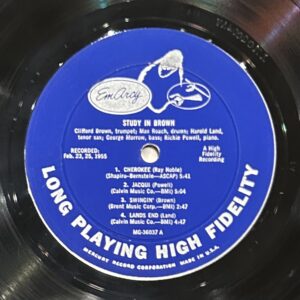 ● Clifford Brown And Max Roach / Study In Brown / EmArcy / MG36037 / EX(+) / EX(+) / オリジナル/US盤/MONO/銀環・小ドラマーラベル/DG/A面YMGスタンパー(1stプレス)/Blue Back 貼Laminated Cvr./ジャケ美品クラス!コートスレ少なくペカペカ!角ピン!抜け裂けなし!裏も綺麗!/盤薄スレ程度の美品クラス!高音圧・良音・激音!/※なかなか綺麗な物を見つけるのが難しい本作オリジナル盤としては大変希少なジャケ盤ともに使用感少ない美品クラスの逸品! / 18309KJ /