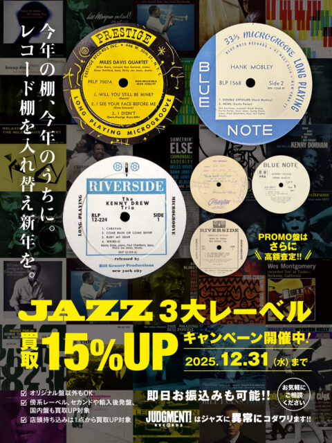 3大レーベル「BLUE NOTE」「PRESTIGE」「RIVERSIDE」アナログ盤 買取15%UPキャンペーン!!