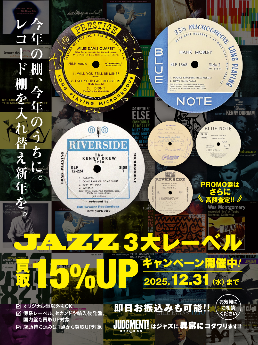 今年の棚、今年のうちに。 レコード棚を入れ替え新年を。 3大レーベル「BLUE NOTE」「PRESTIGE」「RIVERSIDE」アナログ盤 買取15%UPキャンペーン!! ■開催期間 2025年1 … 続きを読む 『今年の棚、今年のうちに。レコード棚を入れ替え新年を。』 3大レーベル「BLUE NOTE」「PRESTIGE」「RIVERSIDE」アナログ盤 買取15%UPキャンペーン!!