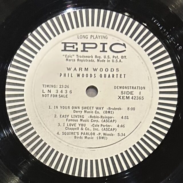 ● Phil Woods / Warm Woods / Epic / LN3436 / EX(+) / EX+ / オリジナル/US盤/MONO/白PROMOストロボラベル/DG/MAT(1B,1A)/ジャケ美品クラス!角ピン!抜け裂けなし!/盤美品!ほとんど薄スレも見当たらない!/※トップコンディションのPROMO盤は希少! / 18846LJ /