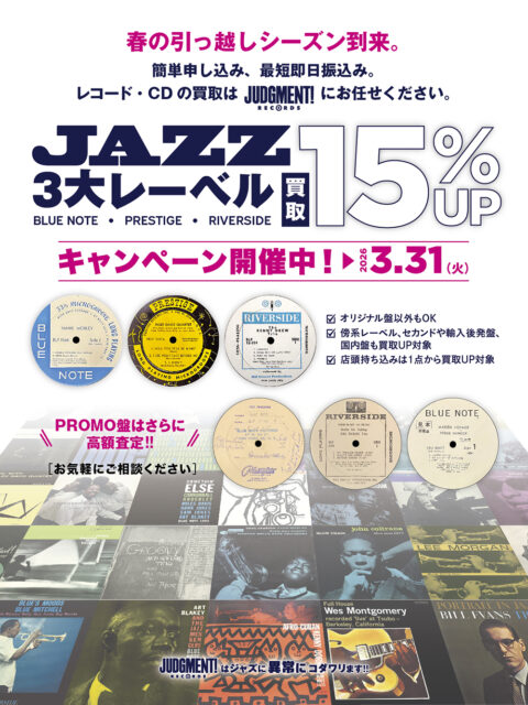 『春の引っ越しシーズン到来。』 3大レーベル「BLUE NOTE」「PRESTIGE」「RIVERSIDE」アナログ盤 買取15%UPキャンペーン!!