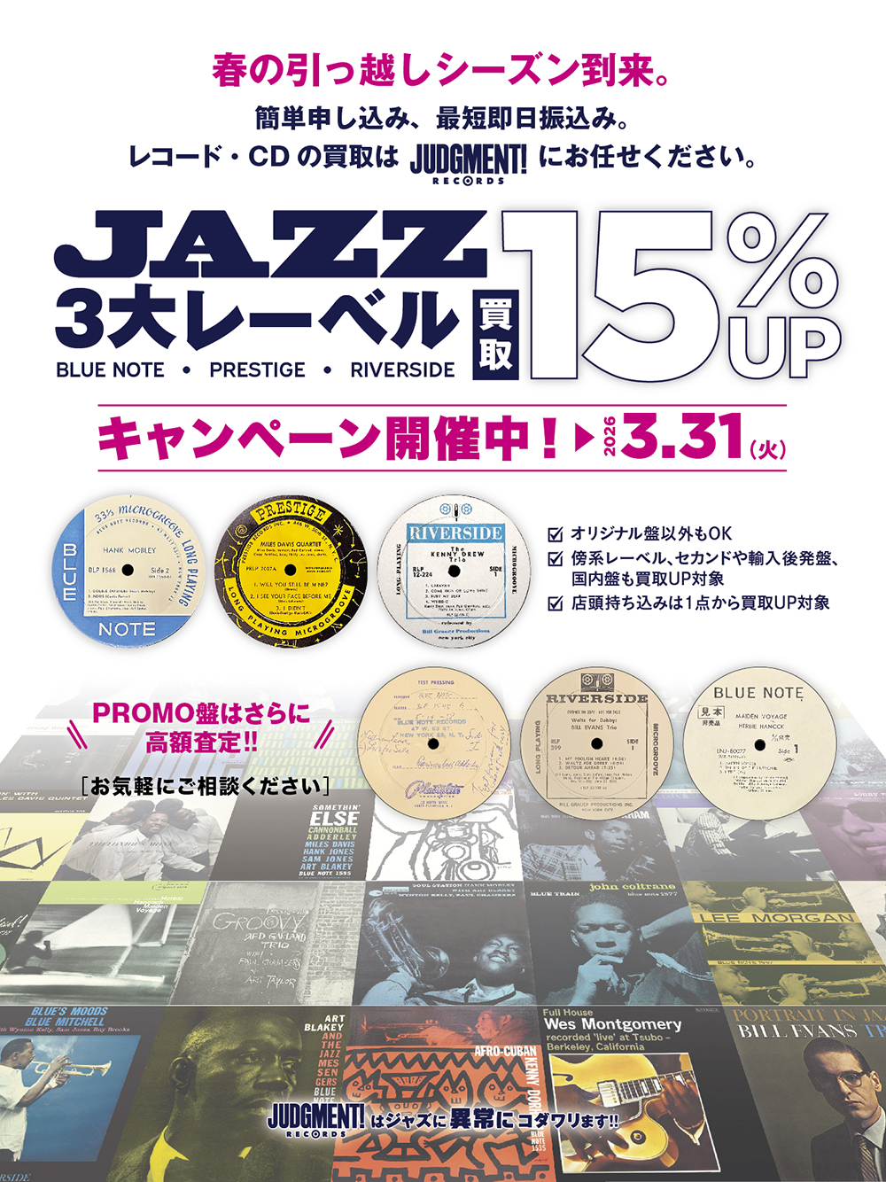 聴かなくなったレコード・CDや、整理をご検討中のお品がございましたら、この機会にぜひお気軽にご相談ください。1枚からでも大歓迎。店頭買取のほか、全国出張買取にも対応しております。 『春の引っ越しシーズ … 続きを読む 『春の引っ越しシーズン到来。』 3大レーベル「BLUE NOTE」「PRESTIGE」「RIVERSIDE」アナログ盤 買取15%UPキャンペーン!!