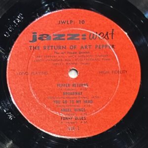 ● Art Pepper / The Return Of Art Pepper / Jazz:West / JWLP-10 / EX / EX / オリジナル/US盤/MONO/艶赤ラベル/DG/Flat Edge/ジャケ取り出し口付近上下若干サケありますが本オリジナル盤としては表裏ともにスレもなくニスの光沢を感じられる準美品クラスです!/盤薄スレ程度で良好!本盤特有の無音部エッジCUTムラが若干ありますがプレイに問題ございません※高音圧! / 19436CK / ¥99,000-